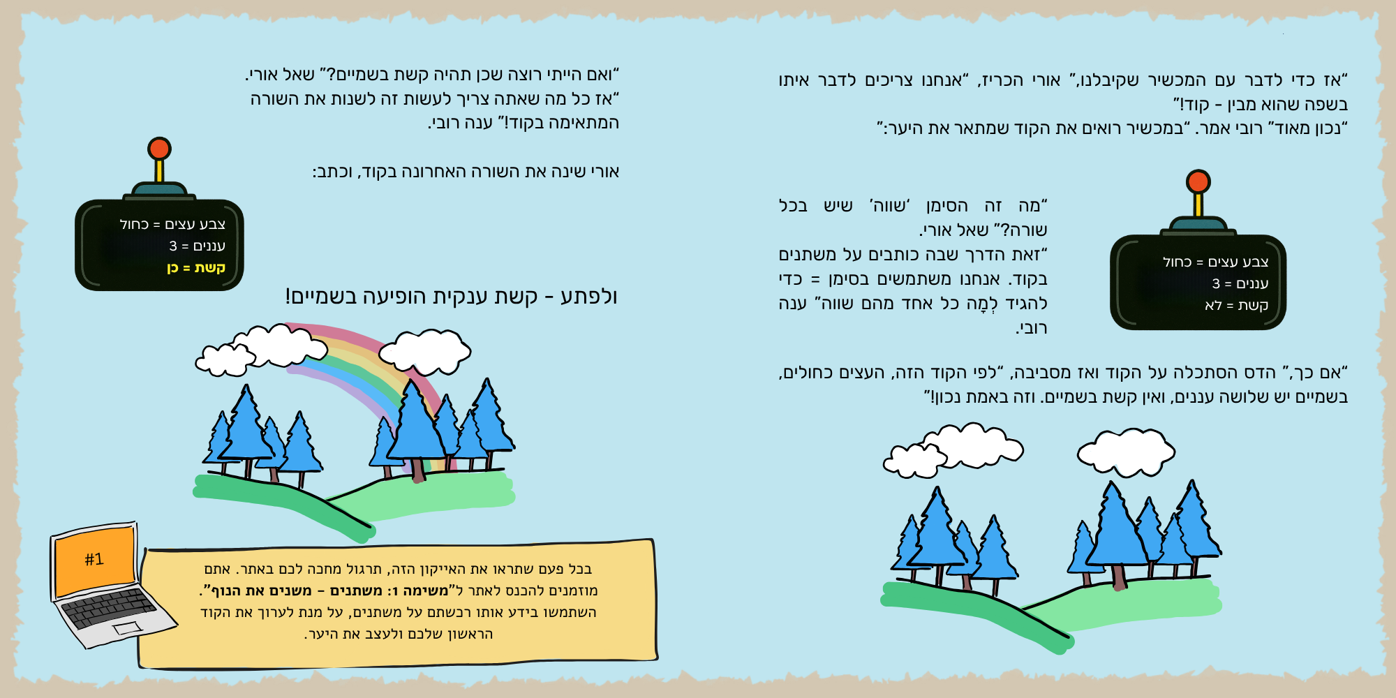 “ברוכים הבאים לממלכת הקוד,” אמר הרובוט, “המקום הזה שונה מהמקום שממנו הגעתם - בממלכה הזאת, כל